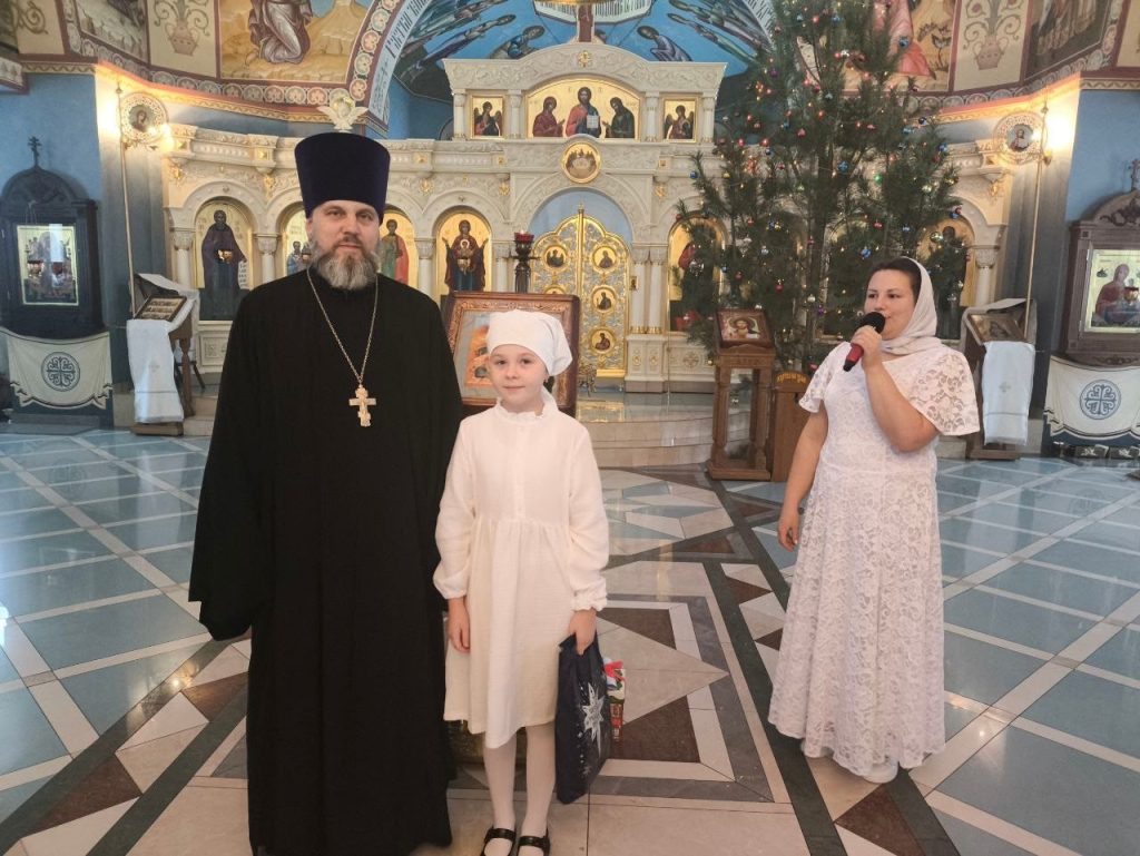 Праздник открыл иерей Димитрий Казармин, председатель отдела по взаимодействию с вооруженными силами и правоохранительными учреждениями Барышской епархии. Он поздравил собравшихся, а затем вместе с воспитанниками воскресной школы исполнил рождественские песнопения и песню «Светлое Рождество». Ребята также порадовали гостей чтением стихов.Завершив первую часть торжества, преступили к награждению. Были отмечены дети – победители и участники православного проекта «Путь к Рождеству Христову», пройденного ими вместе с семьями и педагогом воскресной школы. Также наградили победителей творческого конкурса в рамках Всероссийского Рождественского фестиваля «Возродим Русь святую!», занявших первые и вторые места.